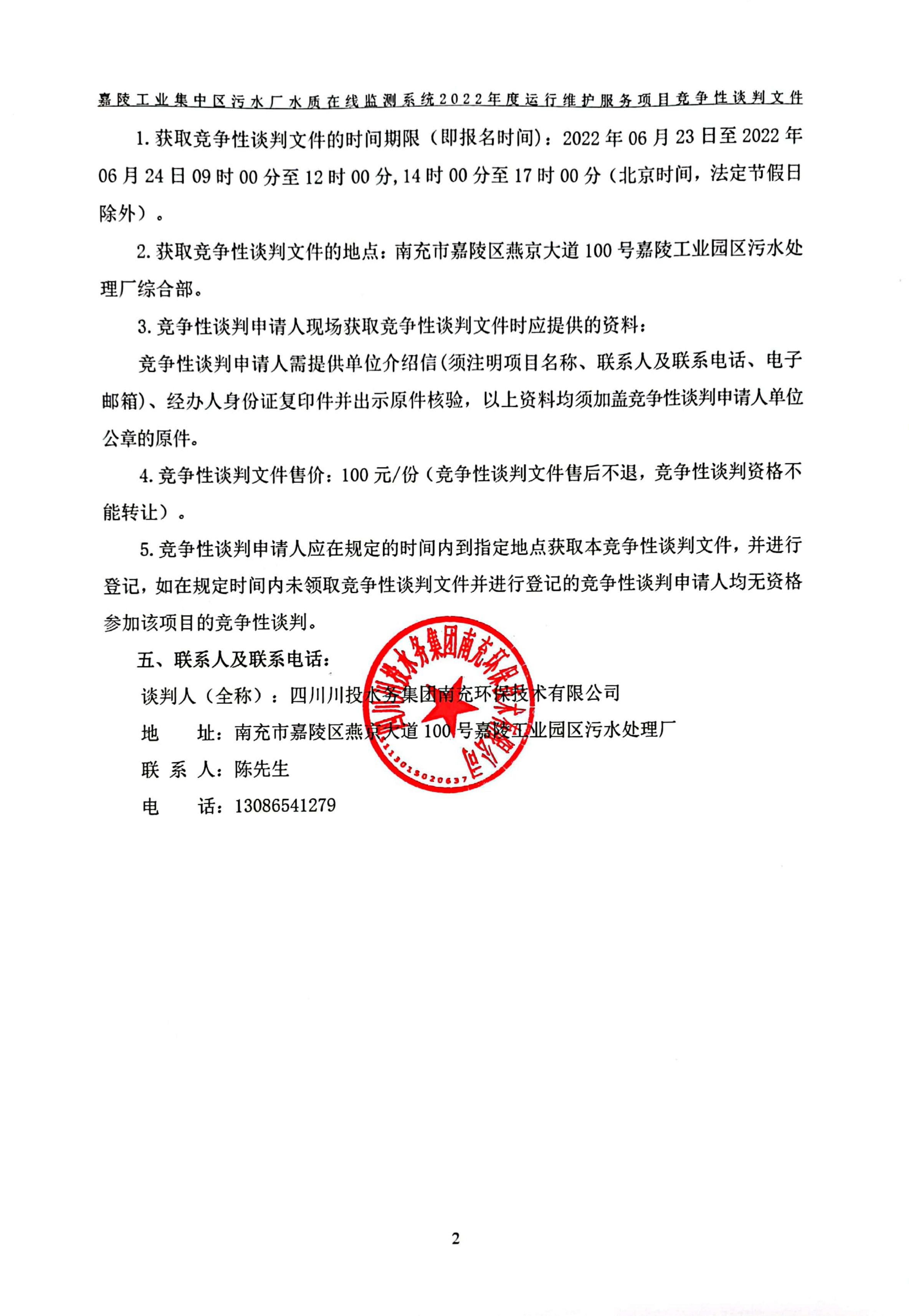 南充嘉陵工业集中区污水厂水质在线监测系统2022年度运行维护服务项目竞争性谈判文件