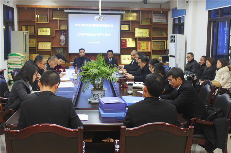 1月29日下午3点,川投水务集团纪委书记但必良率总经理助理、党群工作部主任杨志刚、综合部副经理喻迦、安全环保部肖潇对荣县水司2018年党建、廉洁建设、维稳综治、安全环保及团队建设等工作开展情况进行综合考评。