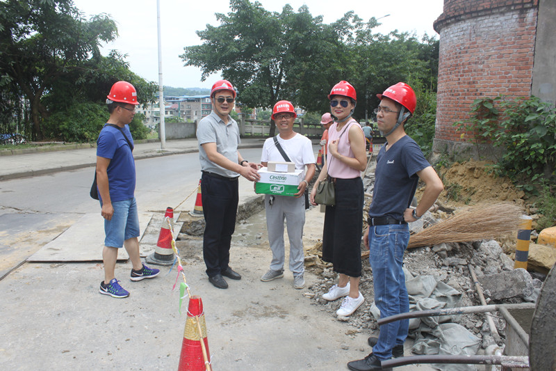 8月14日上午,公司总经理龚庆率副总经理毕雪桃、计划财务部、安装工程部负责人顶烈日、冒高温先后到远达D1-11安置房小区、环城西路西二线安装工程施工现场,看望慰问战斗在第一线的安装作业人员,同时代表公司党、政、工给他们送去了防暑降温药品和矿泉水。