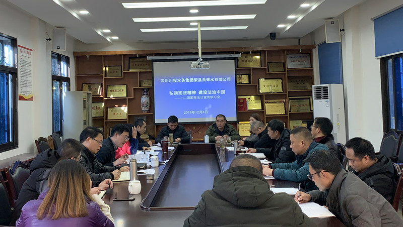 为贯彻落实川投水务集团关于宪法宣传实施工作的要求,深入学习习近平总书记关于宪法的重要论述。近期,荣县水司召开了国家宪法日宣传学习会,会议由支部书记、总经理龚庆主持,公司党员干部及部分职工参加了学习会。