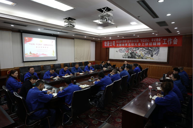 2020年1月14日上午8点30分,宏源公司在11楼中会议室召开“学习宣传贯彻习近平总书记在‘不忘初心、牢记使命’主题教育总结大会上讲话精神工作会”。宏源公司党委委员、班子成员、支部委员、群团组织负责人、党委办工作人员参加会议。宏源公司党委书记、总经理李旭东主持会议并讲话。