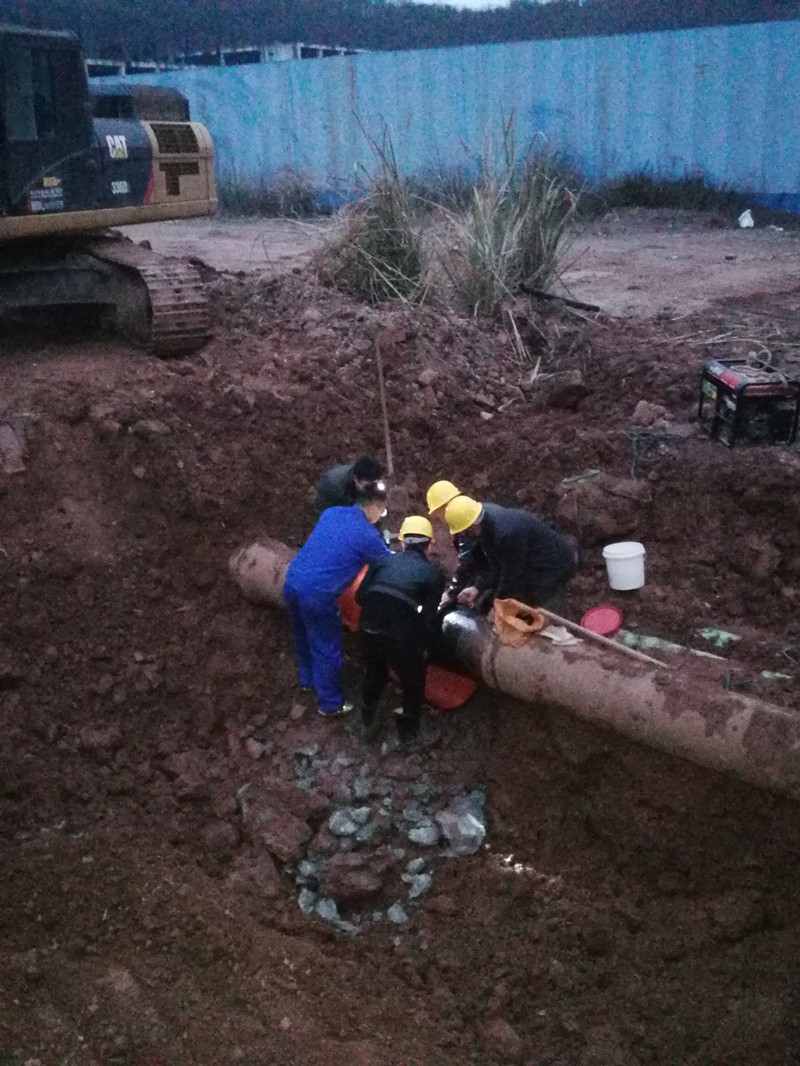 2月27日下午17时许,公司值班电话接到郪江新城施工方报告,因施工紧急,未事先向我司询问供水管网走向而造成管道挖漏。公司接到报漏后,立即上报值班领导,经抢修人员第一时间赶到现场了解、查看,DN400球墨铸铁主管挖漏3个漏点,将会影响郪江新城片区涉及青龙湾小区、余粮村安置房和附近幼儿园、楼盘等共计3000余户居民在疫情期间“宅”家正常用水和社区消毒工作。