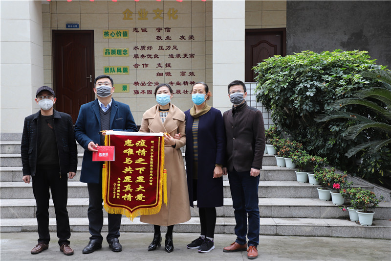 “非常感谢你们在疫情防控特殊时期第一时间支援我们北街社区,缓解了我们的燃眉之急!”3月10日上午,荣县旭阳镇北街社区主任梁玉蓉代表北街社区向公司送上“疫情之下显大爱,患难与共显真情”的锦旗和一封感谢信,对在疫情防控期间社区包保工作中所做的努力和贡献表达了崇高的敬意和诚挚的感谢。