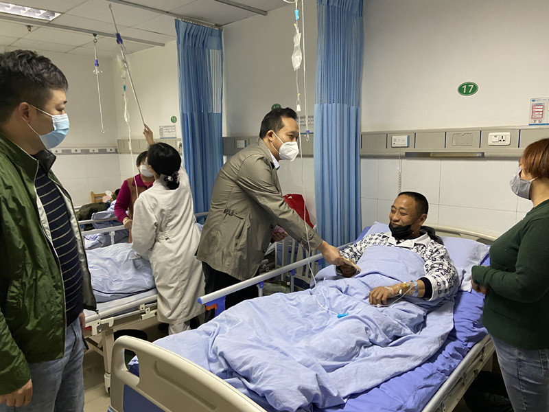 3月27日上午,大英水司党支部书记、总经理刘松果到大英县人民医院探望慰问因病住院结对帮扶贫困户向东,代表公司送去爱心资助款,并以个人名义给予捐助。