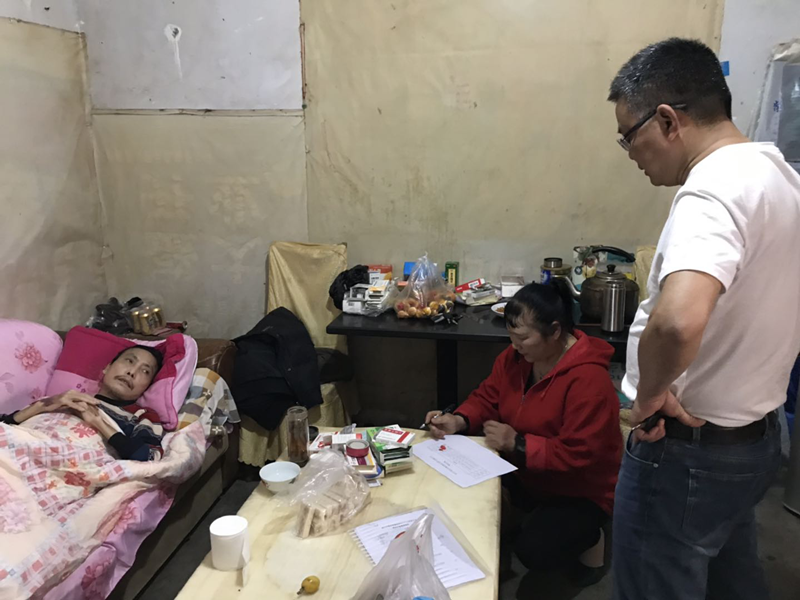 王总一行人分为3个小组,对全村12户帮扶对象逐个走访,重点对贫困户周玉枢家的电视进行了更换调试并对墙体及室内外电线做了加固和修整,消除了用电安全隐患;对贫困户罗世祥家的老旧电线做了彻底整改、更换,随后到他在县城养病租住处看望、慰问、鼓励。