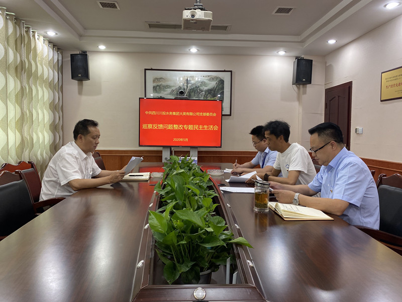 按照川投水务党委《关于认真开好巡察反馈问题整改专题民主生活会的通知》要求,结合大英公司落实省国资委第二巡察组反馈意见的整改方案,5月18日下午,大英公司党支部召开巡察反馈问题整改专题民主生活会。会议由大英公司党支部书记、总经理刘松果主持,公司经营班子成员参加会议。