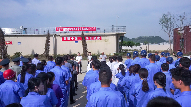 2020年6月5日上午8时10分左右,在公安交警警车的引导下,三辆环境监察车、三辆应急抢险车急速驶向中江县高新区污水处理厂,中江县住建局、生态环境局、川投水务中江水司联合开展2020年污水处理厂突发进水水质异常事故联合应急演练。