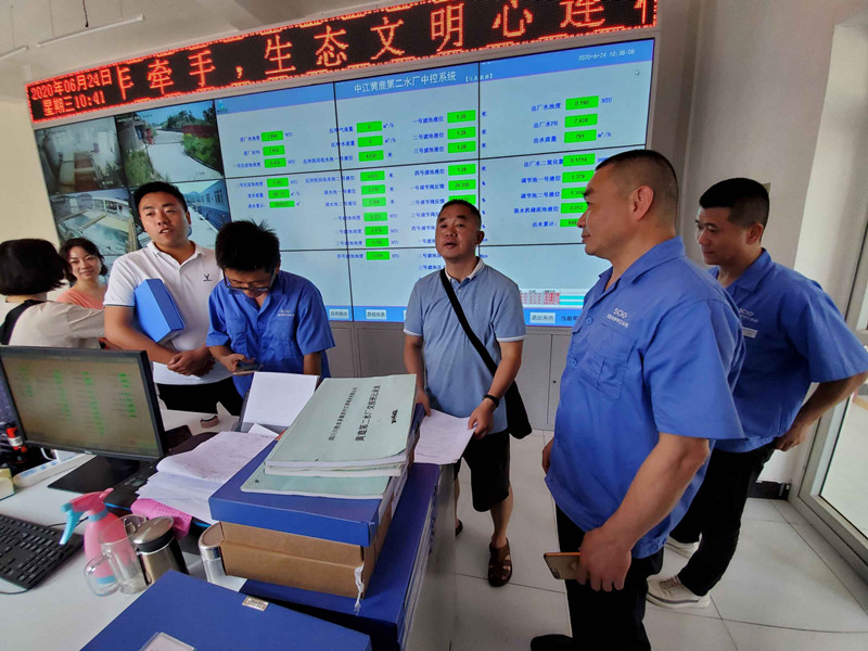 检查组刘局长一行首先来到黄鹿第二水厂的应急物资储备室,对厂区应急物资储备情况进行了检查,同时详细了解了黄鹿第二水厂工艺流程、运行情况和供水情况。随后,刘局长一行到中控室对黄鹿第二水厂的制度建设及落实情况、应急预案制定和演练情况、水质检测记录、安全生产日常检查巡查、设施设备情况和消毒药剂使用情况的相关资料进行查阅,并对厂区进行了安全检查和地质灾害隐患排查,未发现安全隐患。