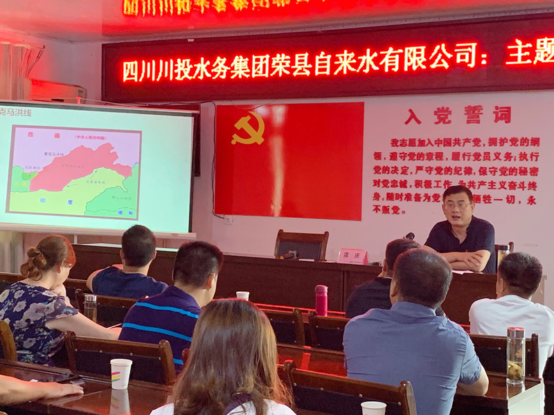 在会上,首先由支部书记、执行董事、总经理龚庆以“铸牢初心之魂 、永扛使命之任”为主题,简要地回顾了中国共产党的发展史与奋斗史,深刻阐述了供水人的初心与使命。随后,并针对当前时事热点问题--中印边境冲突问题争端,龚书记以PPT的形式,图文并茂的重点从“印方两次越界加勒万地区、麦克马洪线、中印边境冲突下一步的走向及我国军事准备情况”三方面内容,深刻剖析了印度两次非法越界的原因、英属印度与中国的划界既马克马红线的由来及当前我国军事准备的基本情况。龚书记要求,一是全体党员干部、职工要坚定理想信念,树立正确的人生观、世界观、价值观;二是永葆共产党员的先进性和纯洁性,不忘初心、牢记使命,立足岗位做好群众服务工作;三是不负韶华、珍惜拥有,风声雨声读书声,声声入耳,家事国事天下事,事事关心;四是全体职工尤其是党员干部、职工要宣扬正能量,敢于担当和创新,做国家富强、民族复兴伟大中国梦的弄潮儿。