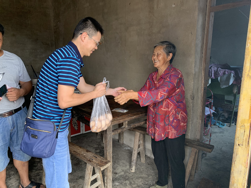 在“支部书记讲党课”会后,公司13名党员帮扶责任人分别入户慰问了所帮扶贫困户,并在龚书记的带领下,扶贫人员通过以购代捐的方式向贫困户购买了鸡蛋、玉米、李子、香蕉等农副产品,真正以实际行动关心和帮助贫困户。