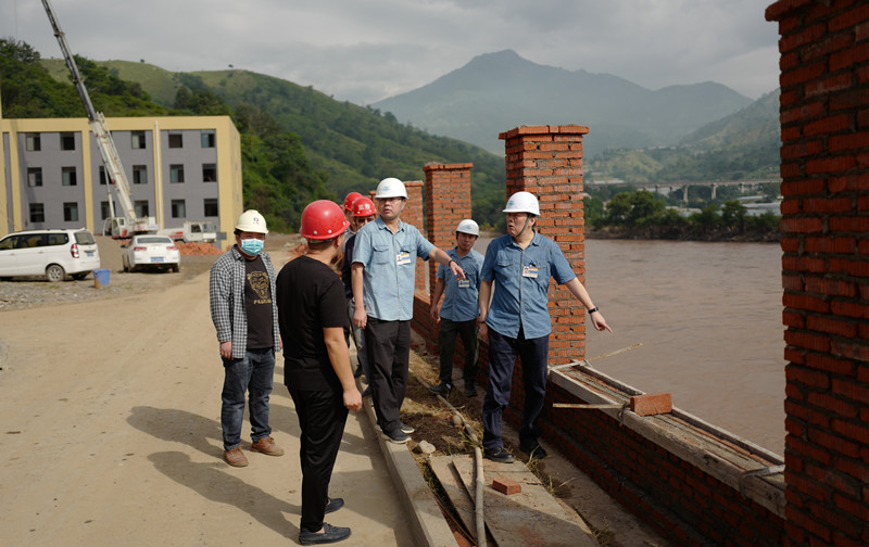 在项目现场,检查小组对防疫、防汛值班,施工人员作业规范与防汛物资堆放、设备设施运转、高低压配电间、危化品仓库等重点安全点位逐一进行检查,对压滤设备吊装、农灌渠、进场道路等施工重点环节与EPC总包进行讨论。检查组要求公司项目负责人李军与现场总承包、监理、项管单位等一起对检查过程中发现存在的安全隐患立即整改并限时完成,对整改结果进行验收与评价,对施工组织方案再次优化,确保一枝山项目设备稳定运行,早日实现一级A标。