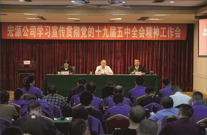 2020年11月6日下午2:30,宏源公司在11楼会议室召开学习宣传贯彻党的十九届五中全会精神工作会。宏源公司党委书记、总经理李旭东主持会议。