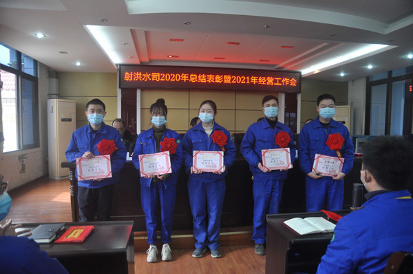 党支部副书记、副总经理李云宣读了川投水务集团《关于对2020年度优秀员工表彰的通报》以及射洪水司《关于表彰2020年度先进集体和先进个人的通报》。