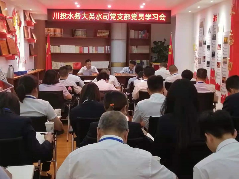 为扎实开展党史学习教育,进一步丰富学习内容,5月26日下午,川投水务大英水司党支部根据党史学习教育计划,结合公司工作实际,开展党史学习教育专题党课暨党员学习会。邀请大英县直机关工委常务副书记骆中华讲党史学习教育专题党课。党员大会受大英公司执行董事、总经理王文川委托,由大英公司党支部副书记周义双主持会议,党支部组织委员、副总经理王洪先,中层副职以上干部、全体正式党员、预备党员、入党积极分子、重要岗位人员参加会议。