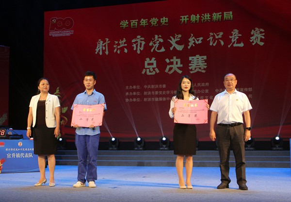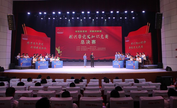 2021年7月16日下午2:30分,由中共射洪市委、射洪市人民政府主办,市委党史学习教育领导小组办公室、中共射洪市委宣传部承办的射洪市“学党史·跟党走”党史知识竞赛总决赛在市文化艺术中心举行,射洪市各镇、街道、市直各部门代表参加并观看了比赛。