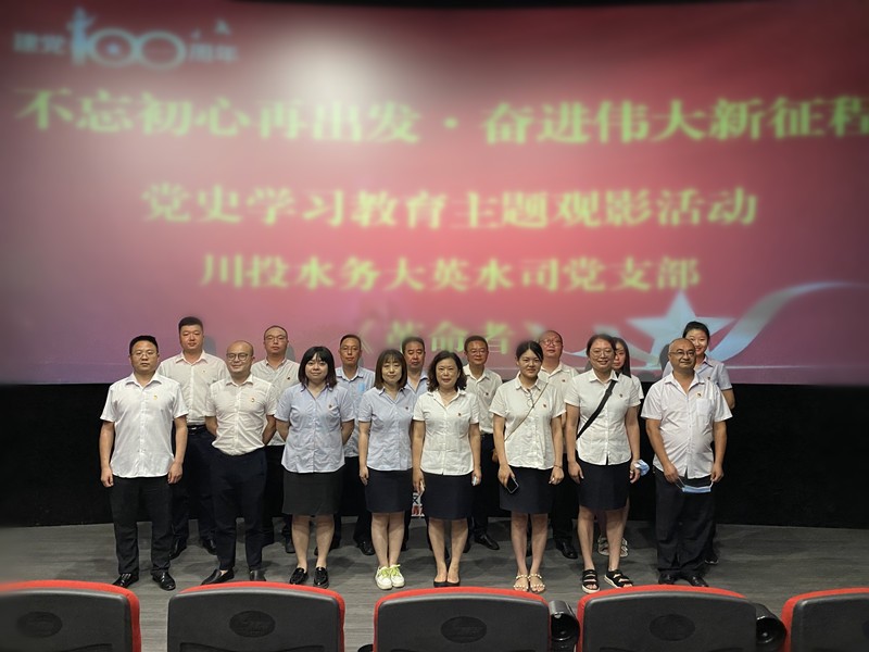 为深入开展党史学习教育,庆祝中国共产党成立100周年,根据川投水务集团党史学习教育领导小组通知要求和公司党支部七月主题党日活动计划,7月28日下午,大英水司党支部组织全体党员、预备党员、入党积极分子在大英永逸电影院5号厅观看红色电影《革命者》。进一步引导党员干部群众发扬红色传统,传承红色基因,赓续红色血脉。