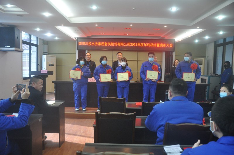 1月18日下午,射洪水司在公司三楼会议室召开2021年度总结暨表彰大会,会议由公司党支部青年委员、副总经理杨延强主持。公司领导班子、中层管理人员、员工代表和受表彰的干部职工共计40余人参加了会议。