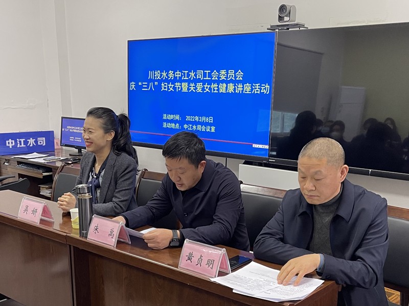 首先,支委委员、工会主席、副总经理黄贞明传达了《四川川投水务集团有限公司工会委员会“三八妇女节”<慰问信>》。随后,支部书记、董事长、总经理朱禹代表公司党政领导及全体职工向公司全体女职工致以节日的祝贺和诚挚的慰问,并宣布活动开始和介绍讲座嘉宾。
