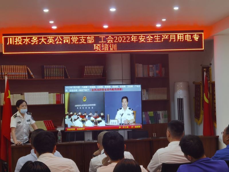 6月7日,川投水务大英公司为全面响应2022年安全月部署,努力增强职工安全环保意识,提升安全防范能力,预防和减少各类事故,营造良好的安全氛围,根据“遵守安全生产法,当好第一责任人”安全活动月文件要求,在公司五楼会议室进行安全用电专项知识讲座,公司用电重要部门等共计20余人参加培训。