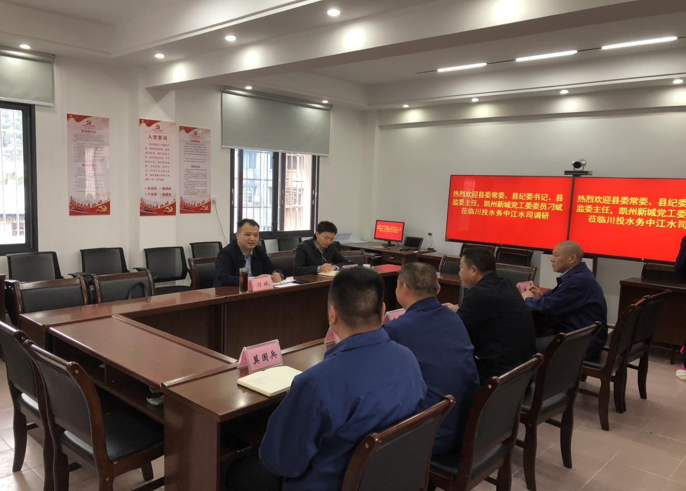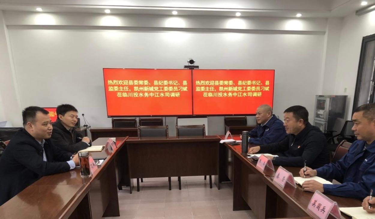 10月27日下午,中江县委常委、纪委书记、监委主任,凯州新城党工委委员刁斌莅临中江水司调研。县能源监测和中小企业服务中心主任黄辉,中江水司支部书记、董事长、总经理朱禹等相关人员陪同调研。