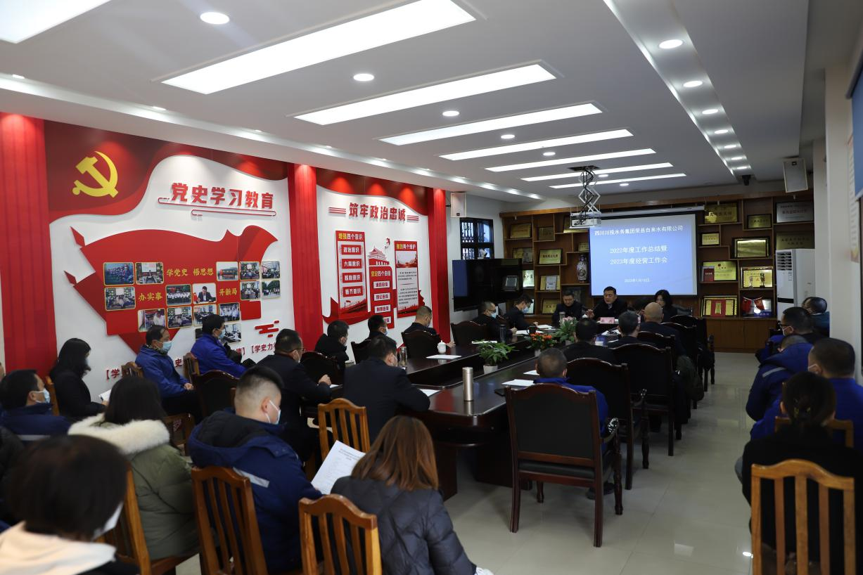 最后,龚总对2023年经营工作进行了安排部署,一是坚持党的领导,继续抓党建促经营,抓好经营强党建,牢固树立“五个意识”即:政治意识、安全环保意识、经济指标意识、危机意识、创新意识,继续开展好优质服务工作。二是狠抓安全环保工作,最大程度保证安全环保工作不出问题。三是要努力生产经营,深入开展各项精细化管理工作,努力完成2023年各项经济指标。四是继续推进荣县城区供水技术改造工程,要倒排工期抓好工程建设,以最快速度抓紧完成该项工程,进一步夯实公司安全发展基础。五是努力做好今冬明春用水保供工作,向地方党政争取有利方案,全力以赴保障县城区的安全稳定供水。六是要充分发挥主观能动性,积极创造环境,争取政策出效益,如自来水水价的调整。七是调研企业发展壮大课题,谋划企业发展蓝图。积极探索政府在建项目TOT委托运营方案,凭借公司的优质服务水平和积累的运营管理经验,争取以受托运营方式实现创收增效。