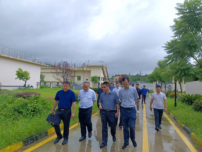 2023年7月27日中午,省住建厅城建管理处处长江浩一行冒着大雨到经开区污水处理厂调研二期扩能项目建设推进情况,并查看一期运行情况。 德阳市住建局副局长彭丽、市城管执法局副局长钟昌涛,中江县副县长彭显杰、县住建局局长廖强以及中江水司党支部书记、董事长、总经理朱禹一行陪同调研。