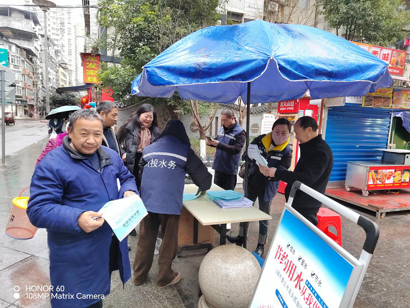 1月18日,为持续做好冬季用水、安全用水宣传工作,万源水司组织相关工作人员前往城区人流量较大的休闲广场开展用水宣传,主要就冬季安全用水以及用水设施的防冻保护进行了现场宣传。