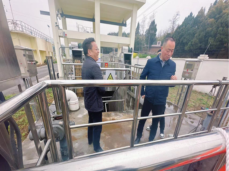 2024年2月27日上午,中江县政协主席袁海到辑庆污水处理厂调研日常运行情况及改扩建项目工作,辑庆镇镇长申晋陪同调研。
