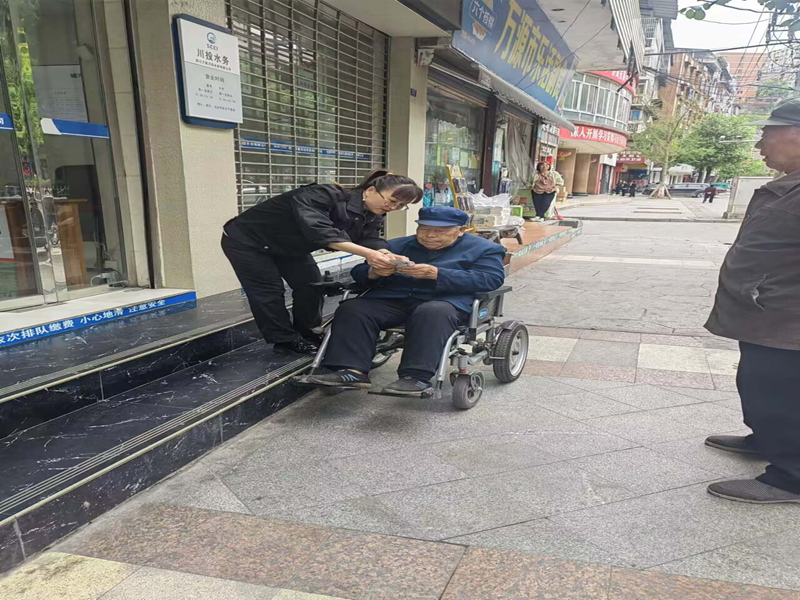 2024年4月22日上午,万源水司的收费大厅迎来了一位特殊的客户。这位市民因身体原因行动不便,却依然坚持亲自前来办理缴费业务。面对这位特殊的客户,收费大厅的工作人员没有犹豫,立即伸出了援手,主动为这位市民提供了全程陪伴的贴心服务。