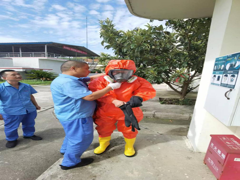 为进一步提高生产一线人员应对二氧化氯泄漏事故的快速反应能力,检验应对措施的有效性,确保员工的生命财产安全。9月10日,剑阁公司在下寺水厂组织开展了应对二氧化氯泄漏应急演练。