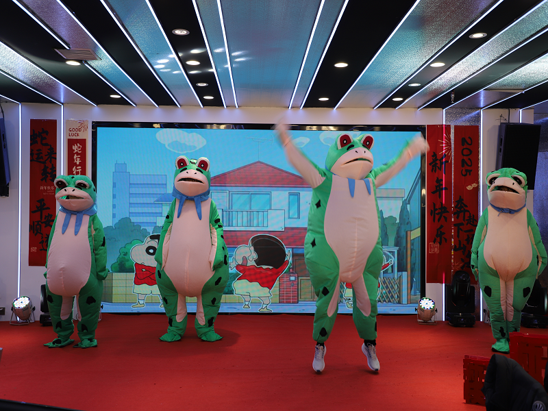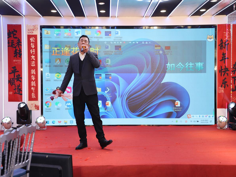 2025年迎春联欢会在欢快的歌曲声中拉开帷幕。各部门员工自行准备编排的11个节目精彩纷呈,形式多样,既有激情四溢的歌舞表演,又有幽默诙谐的相声表演,还有深情并茂的朗诵与合唱等,充分展示了荣水职工们的多才多艺与团队协作精神。其中,由青年职工带来的舞蹈《蛙蛙送福》,以其动感的旋律与活力四射的舞姿,瞬间点燃了现场的气氛,赢得了阵阵掌声。而安装工程部带来的相声《笑话趣谈》,则以幽默诙谐的方式,让观众在欢笑中感到了浓浓的新春祝福,淋漓尽致地展现了公司积极向上、团结奋进的精神特质,表达了公司职工对2025年的美好祝愿与希望。联欢会期间,还穿插了丰富多彩的互动游戏与抽奖环节,将现场气氛推向了一个又一个高潮。职工们积极参与,欢声笑语不断,整个会场洋溢着热烈而欢快,充满着活力与激情的氛围。