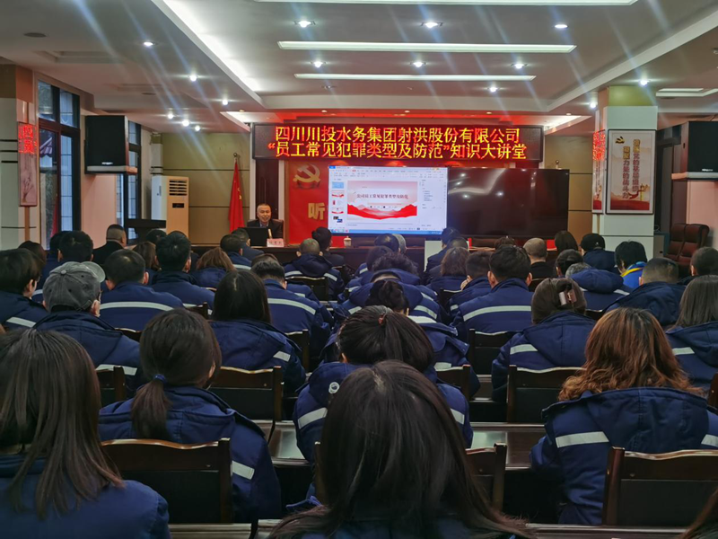 2月21日下午,川投水务射洪公司在三楼会议室开展“员工常见犯罪类型及防范”普法知识专题讲座。此次讲座由公司常年法律顾问张翠烈主讲,公司领导班子、中层管理人员及各部门员工共80余人参加。
