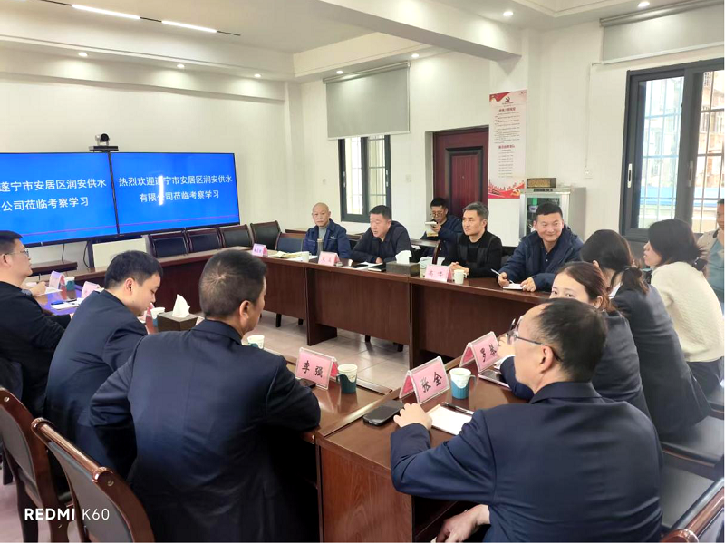 2025年3月24日,遂宁市安居区润安供水有限公司董事长、总经理周志林率供水事业部、综合管理部一行10人到中江公司参观交流。
