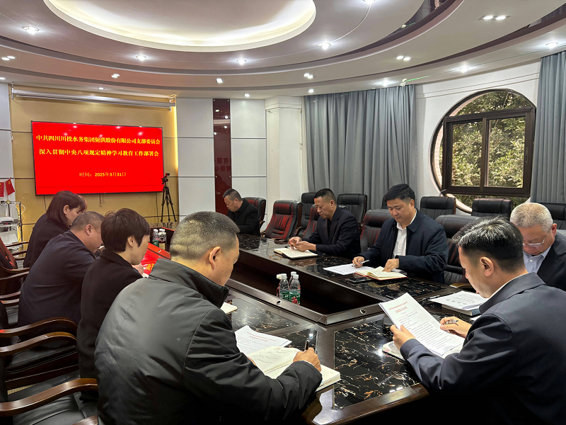2025年3月31日,川投水务射洪公司党支部召开深入贯彻中央八项规定精神学习教育工作部署会,公司领导班子及中层管理人员参加了会议。
