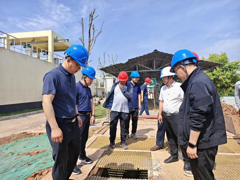 李成忠一行深入辑庆污水处理厂,详细了解了辑庆污水处理厂及配套管网改扩建工程项目的扩建及技改的运行情况,听取了朱禹对项目施工收尾情况及后续调试方案的汇报。