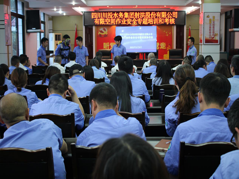 为贯彻落实《四川省有限空间作业安全管理规定》等法规要求,提升员工有限空间作业安全意识和应急处置能力,预防作业过程中窒息、缺氧等事故的发生,川投水务射洪公司于2025年5月9日开展有限空间作业安全专题培训和考核。公司领导班子、各部门负责人、员工现场共计72人参加。