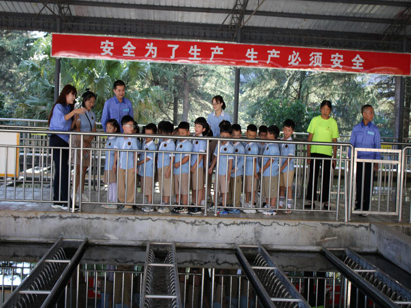 迎着温暖的阳光,在公司工作人员的带领下,小朋友们首先来到了自来水生产厂区,孩子们依次参观了制水设施设备。工作人员用童话术语,将一滴水从水源地,再到厂区混凝、沉淀、过滤、消毒、检测的制水工序描绘成奇妙故事。期间,还演示了余氯实验,让小朋友们亲眼看到“浑浊水变清水”的全过程,用视觉的冲击加深小朋友们对制水的理解,将抽象的制水工艺转化为小朋友们能感知的趣味实验。